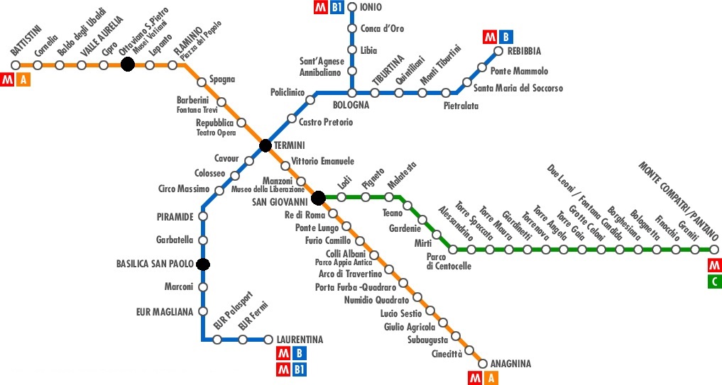 É possível visitar todas as Basílicas Papais de maneira gratuita. As quatro Igrejas estão próximas de estações de metrô, então mostramos abaixo no mapa do metrô de Roma onde está situada cada uma delas. Desta forma, você pode programar sua visita com mais facilidade.