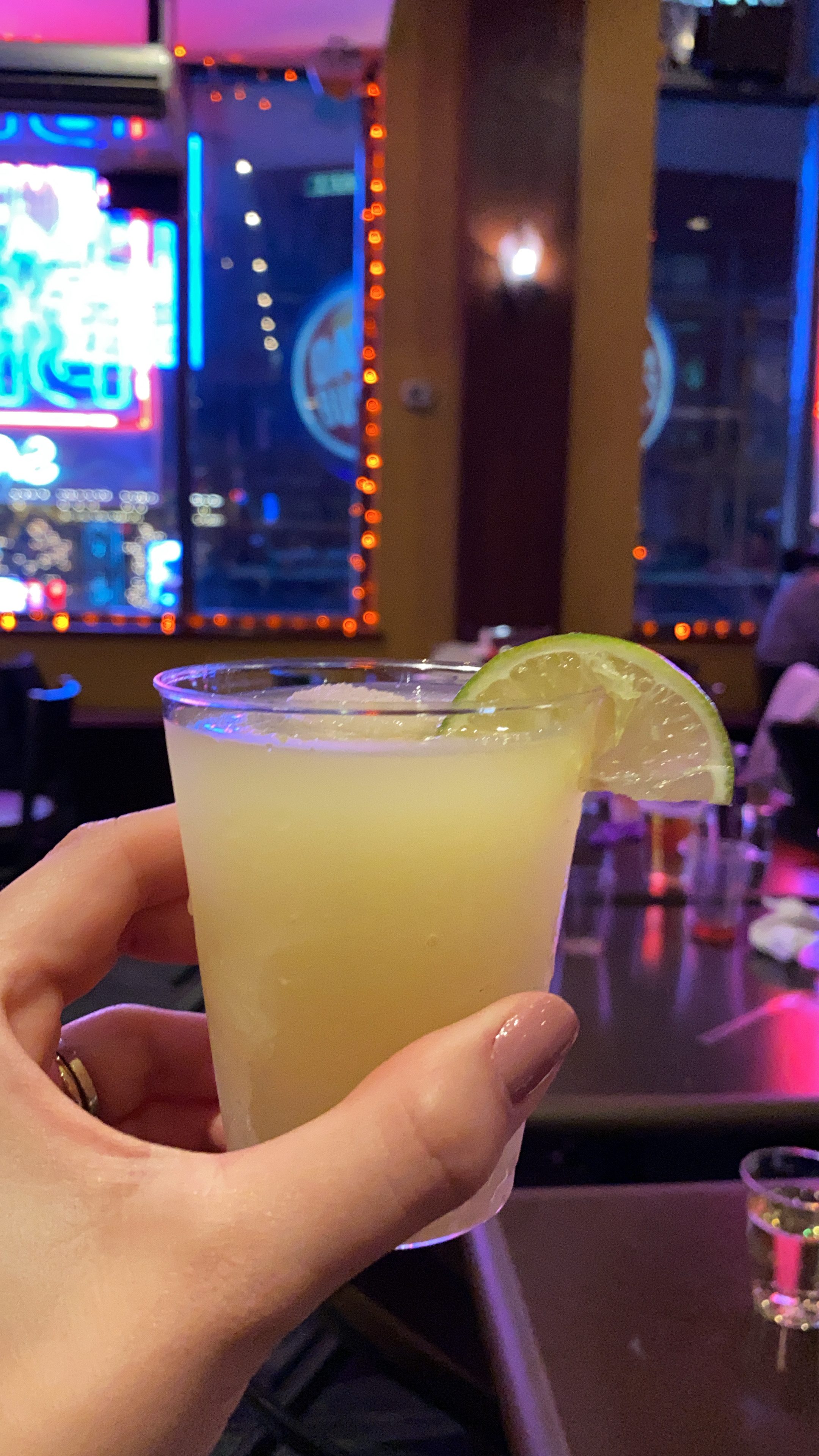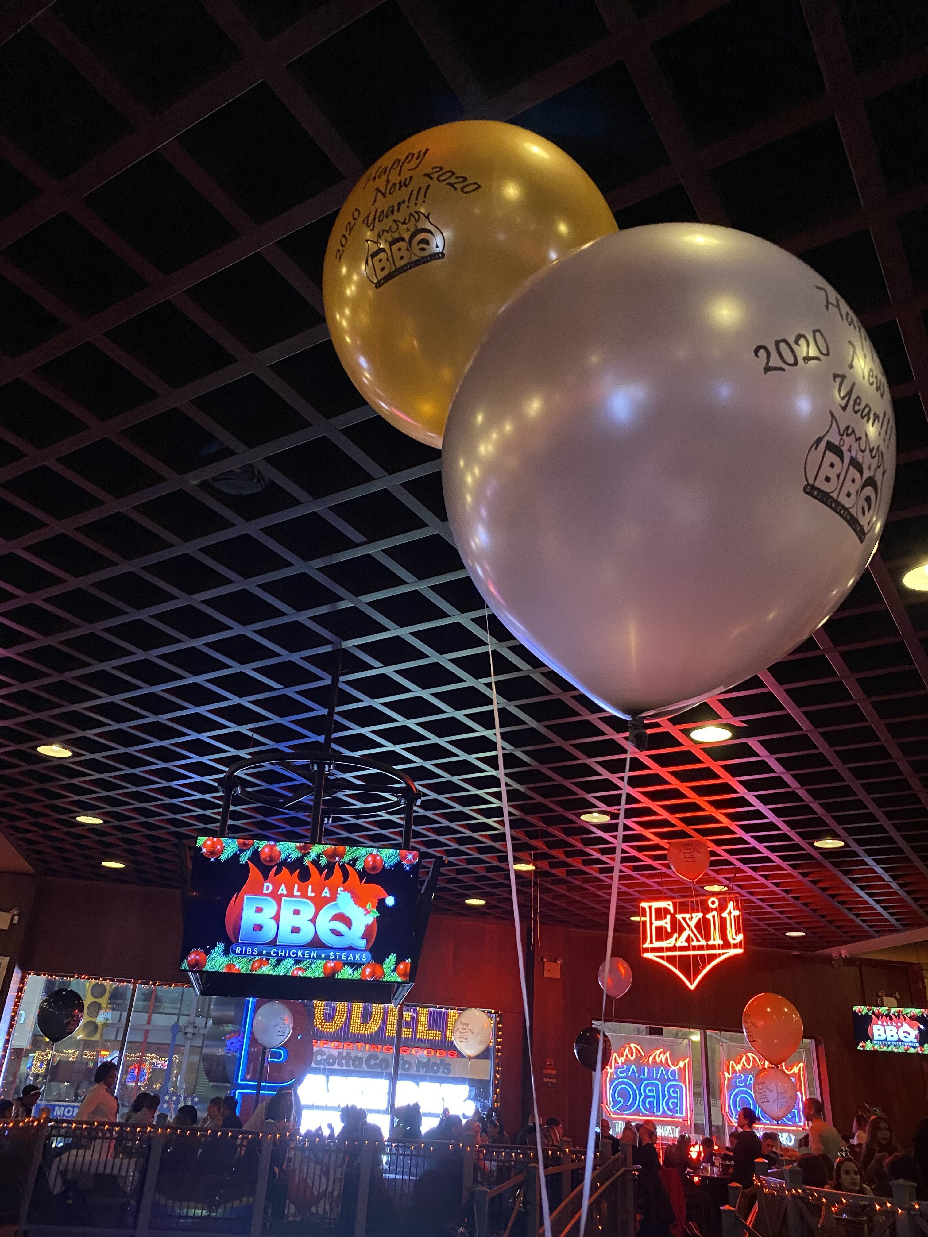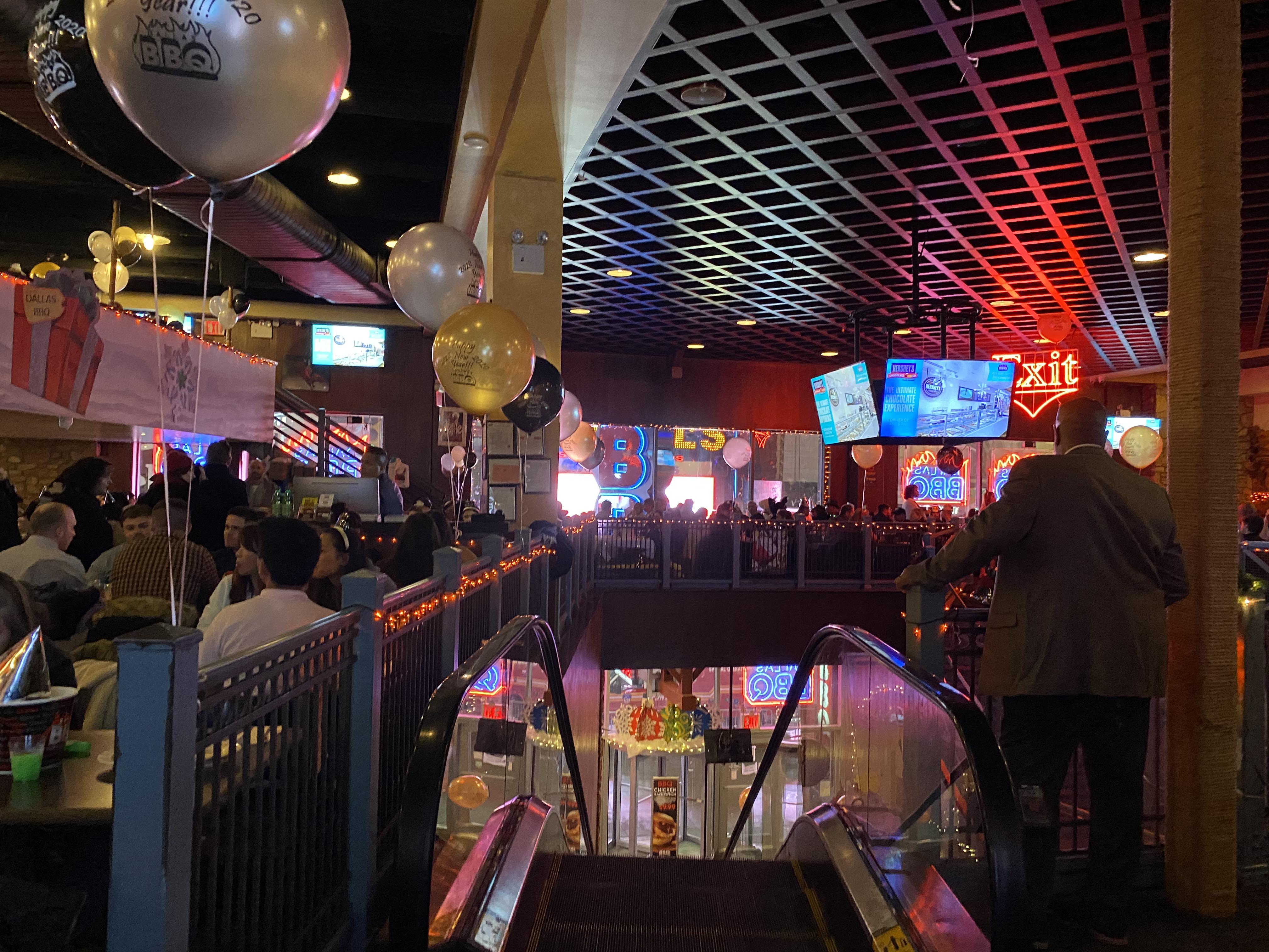 Como contei, passamos a festa de ano novo no Dallas BBQ. Assim que entramos no restaurante, recebemos uma pulseirinha de 21+ e subimos um lance de escadas rolantes até a área das mesas.