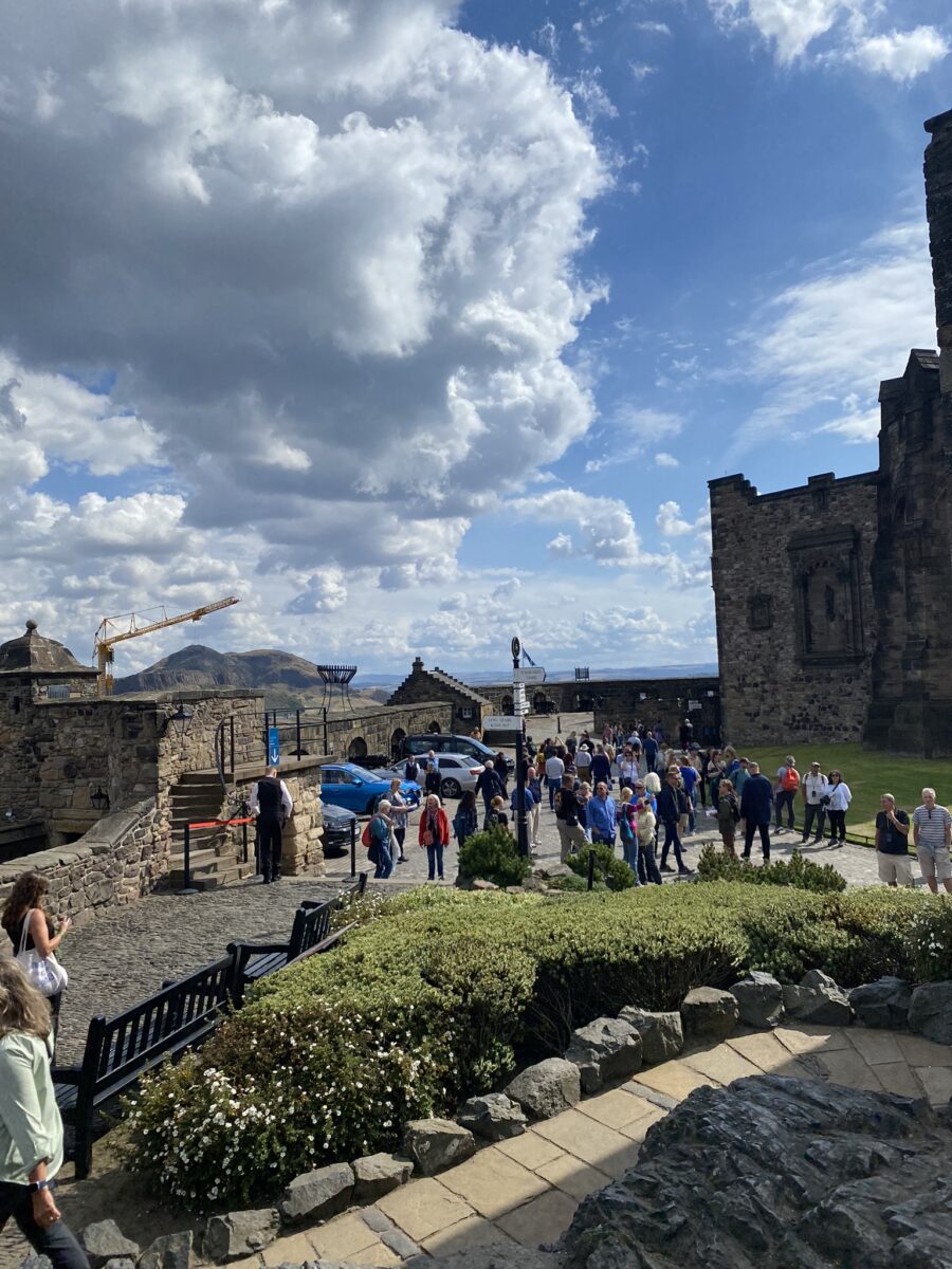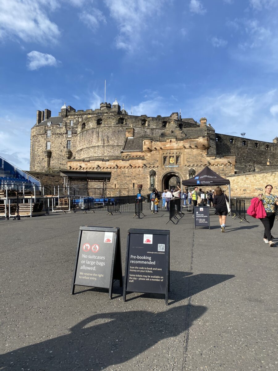 Estive no Castelo de Edimburgo no dia 2 de setembro, por volta das 09h30, em uma sexta-feira de céu azul e temperatura amena. No Castle Esplanade, o imenso pátio na entrada no Castelo, ainda tinha a estrutura de arquibancadas montadas para o Military Tattoo, um evento anual de Edimburgo.