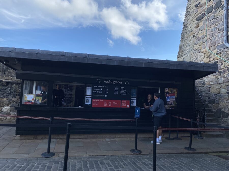 O Castelo de Edimburgo também oferece áudio guia, com opção em português. O valor por áudio é de £3,50 e vale muito a pena para conseguir entender o contexto dos prédios visitados. Além disso, não deixe de pegar um mapa do Castelo para identificar sua localização conforme você explora.