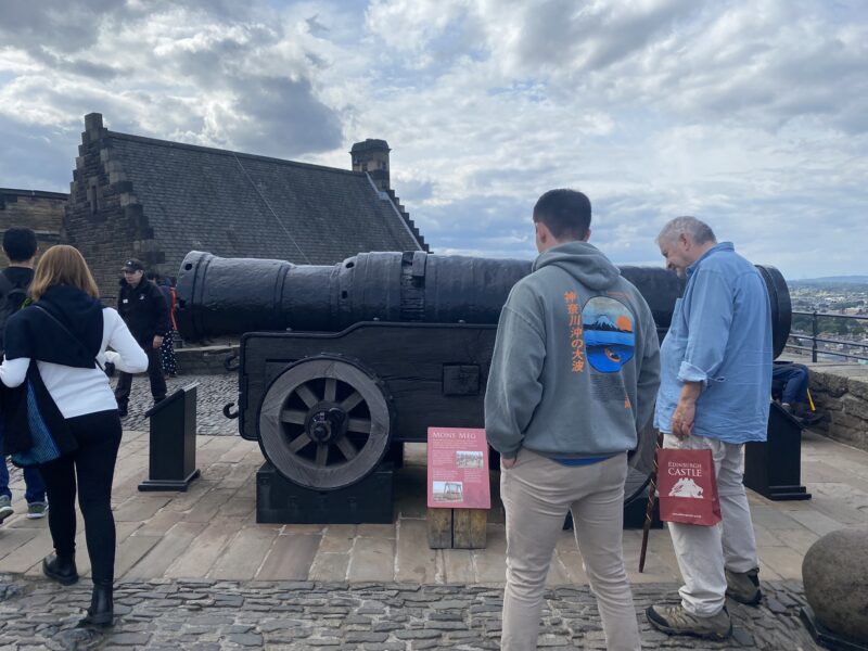 É um canhão que, desde 1861, dispara todos os dias às 13h. Uma multidão se reúne para assistir a tradição. Ou melhor, para ouvir, porque para chegar perto é preciso estar lá com antecedência. Embora eu soubesse que o barulho do canhão seria alto, me assustei do mesmo jeito. Em uma sala abaixo fica uma exposição explicando detalhes do One o’Clock Gun e desta tradição.