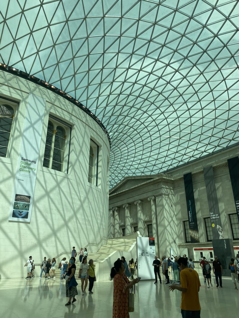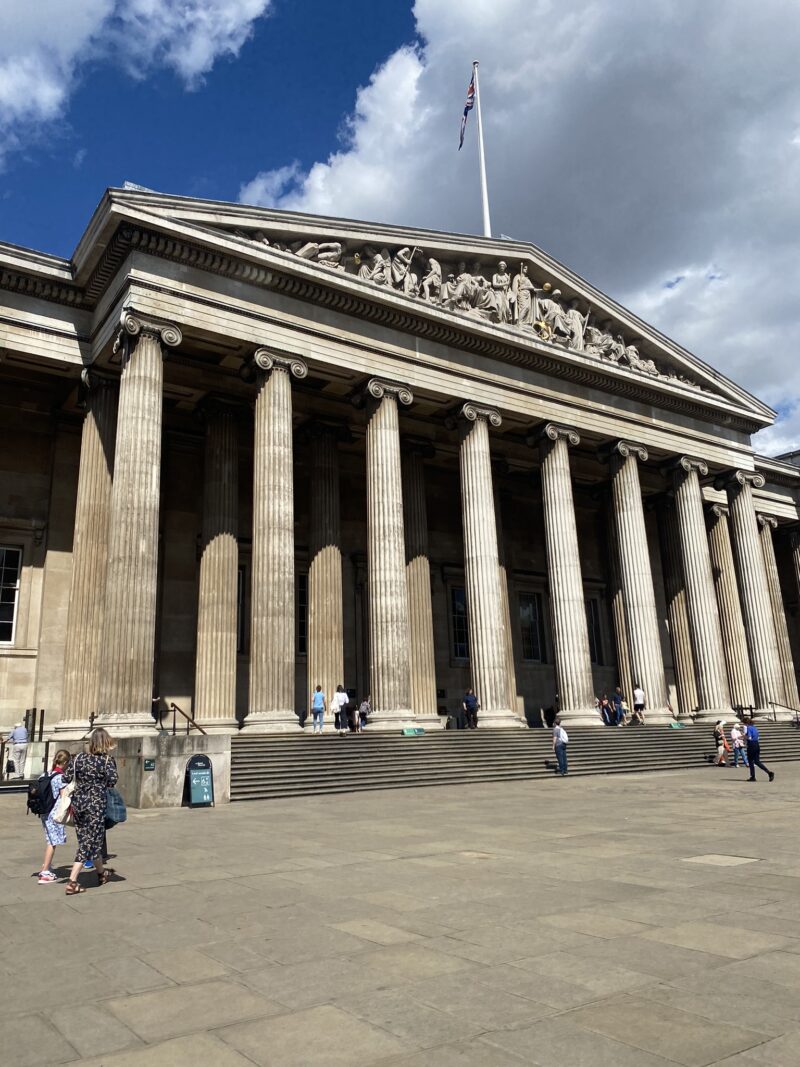 O Museu Britânico é o maior museu de Londres, e também o mais visitado. Possui um acervo composto por peças do mundo todos. Antes de falar sobre o interior do Museu, a construção é um destaque, com suas imponentes colunas na entrada e o saguão principal, que é o cartão postal do museu.