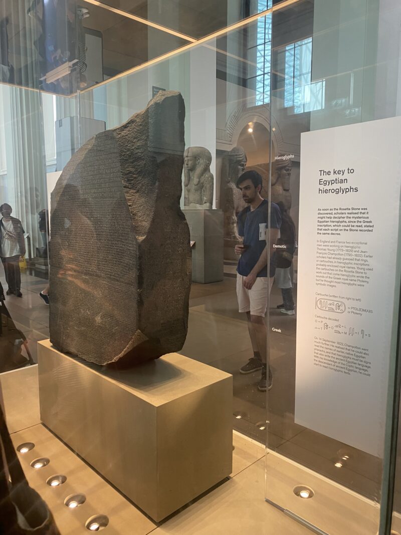 Com uma coleção abrangendo Ásia, Grécia Antiga, Oriente Médio e muitos outros locais, o Museu Britânico possui itens de suma importância, como a Pedra da Roseta, o Busto de Ramsés II e os Mármores de Elgin, ou do Partenon de Atenas.