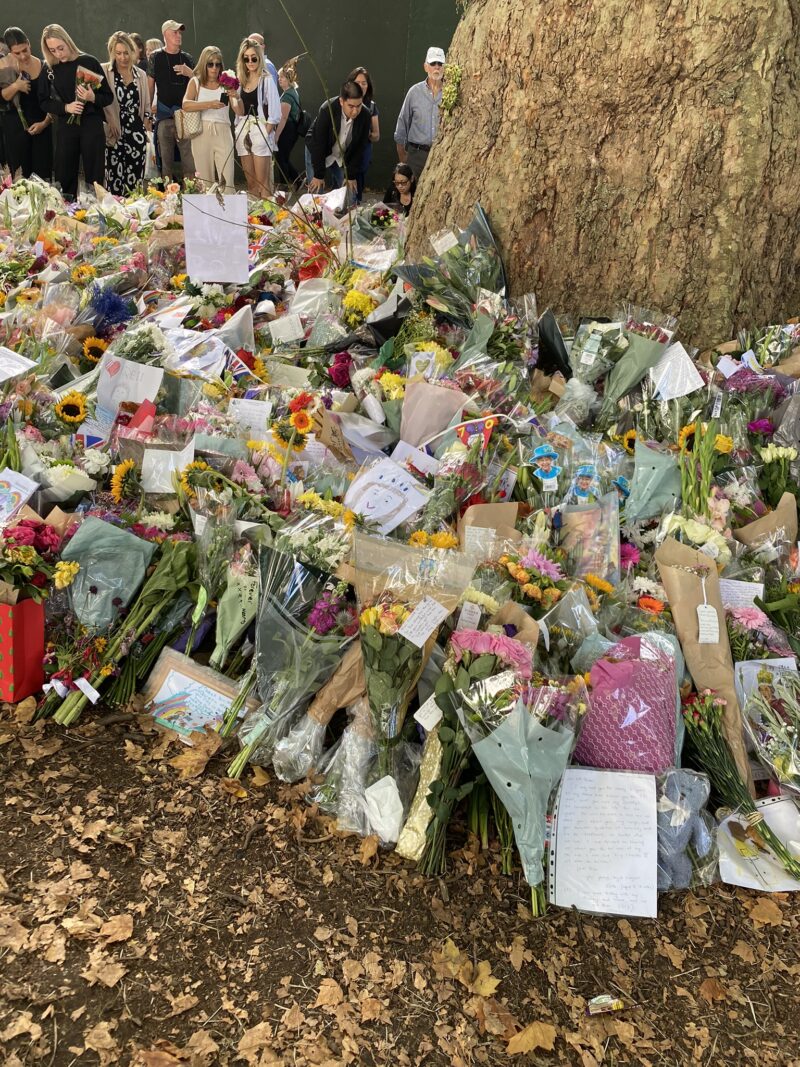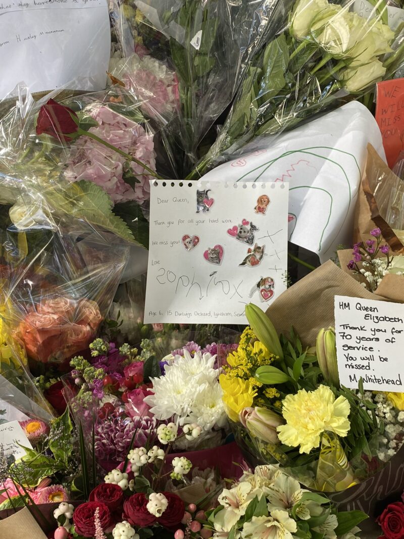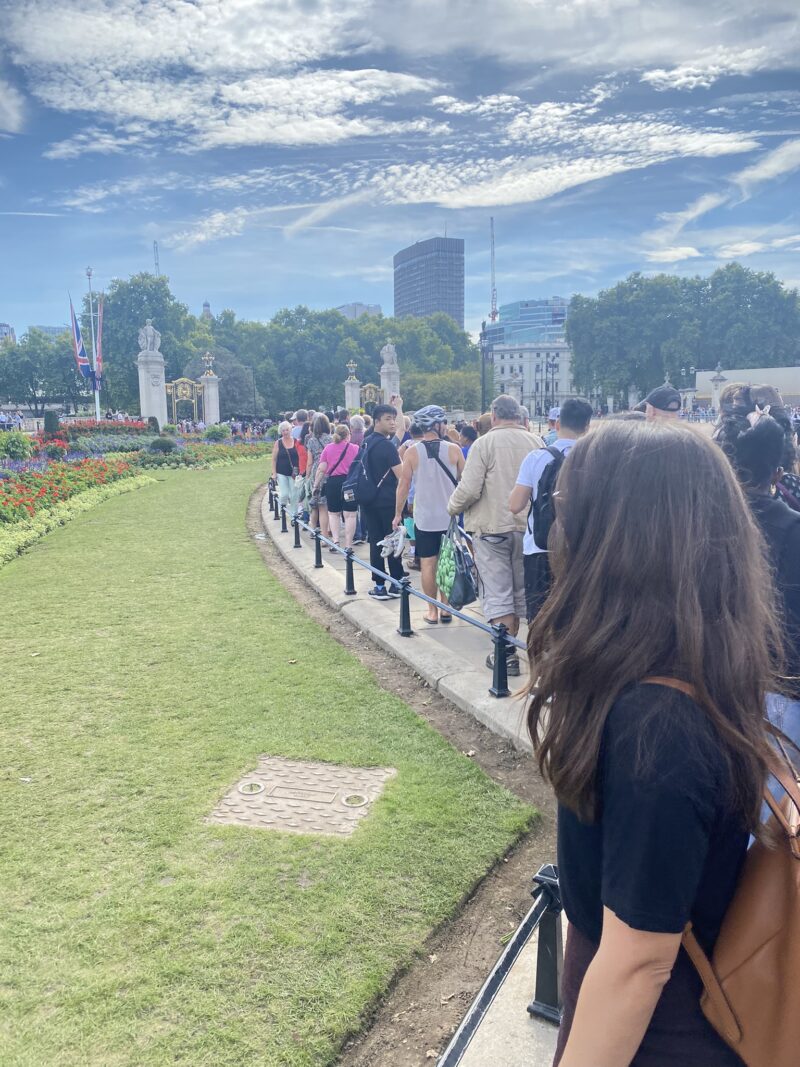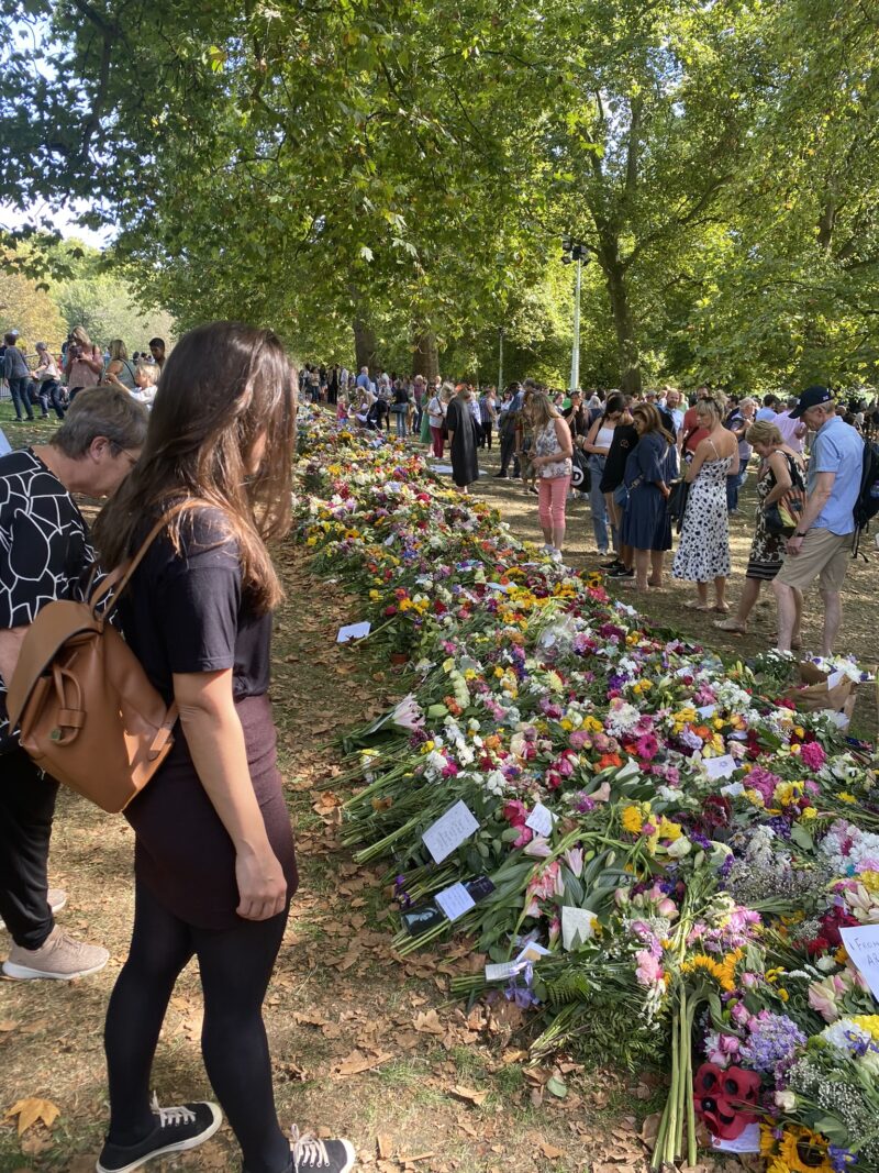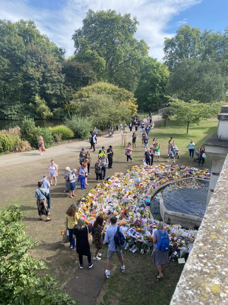 E uma curiosidade – triste, mas histórica – foi que nesse dia estava acontecendo as homenagens à Rainha Elizabeth, que havia falecido dias antes. Então após visitar a Galeria Nacional, nós fizemos o caminho pela frente do Palácio de Buckingham até o Green Park, onde havia uma homenagem floral.