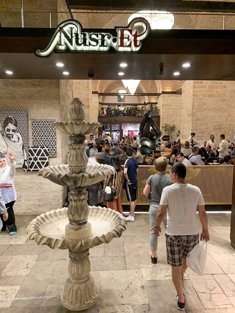 Antes mesmo de chegar em Istambul já havíamos considerado a opção de ir ao Nusr-Et. O Nusr-Et que fomos fica dentro do Grand Bazaar, mas há mais 3 outras unidades em Istambul e outros em outros países, como Estados Unidos e Grécia. O restaurante tem nota 4 no TripAdvisor e pouco mais de 300 avaliações.