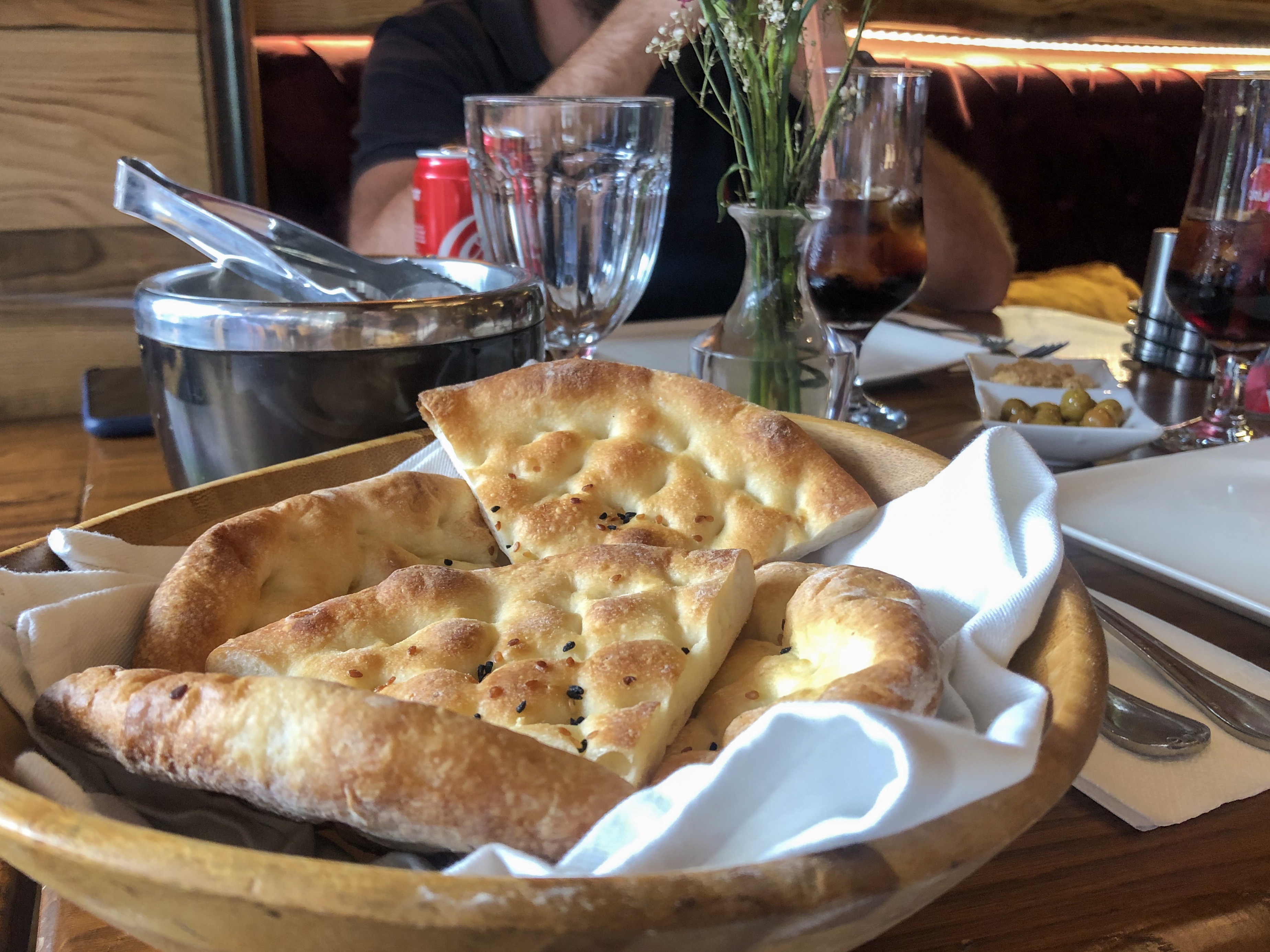 Estive no restaurante no mês de julho, na hora do almoço. Como couvert, foram servidos alguns tipos de pães, acompanhados por alguns patês e azeitonas. Os pães estavam todos muito frescos.