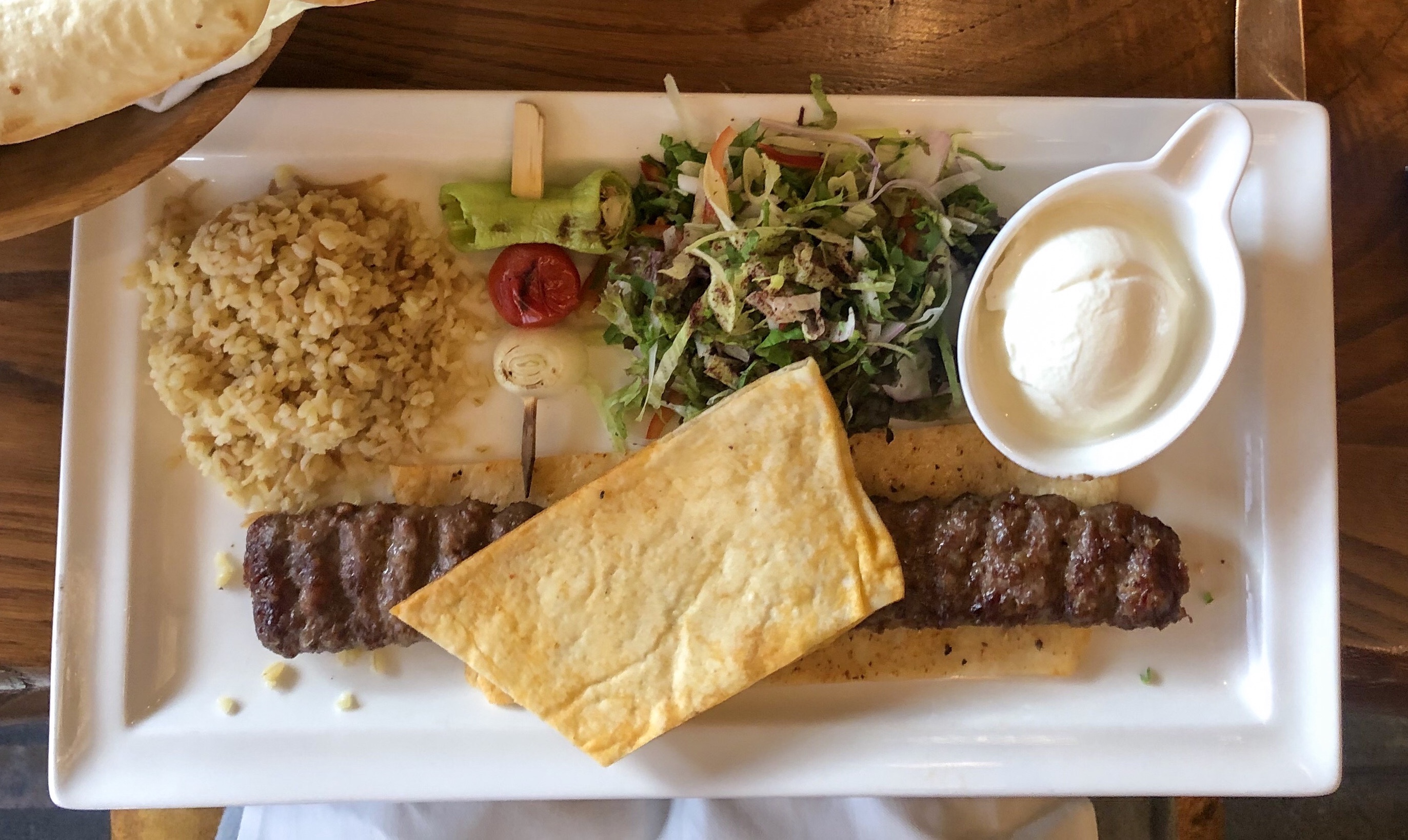 Na hora de escolher o prato principal, pedi ajuda para o garçom e ele me indicou algo bem típico, o Adana Kebab. Este prato se tornou o meu preferido da viagem e acabei pedindo em quase todos os restaurantes onde estive nos dias seguintes.