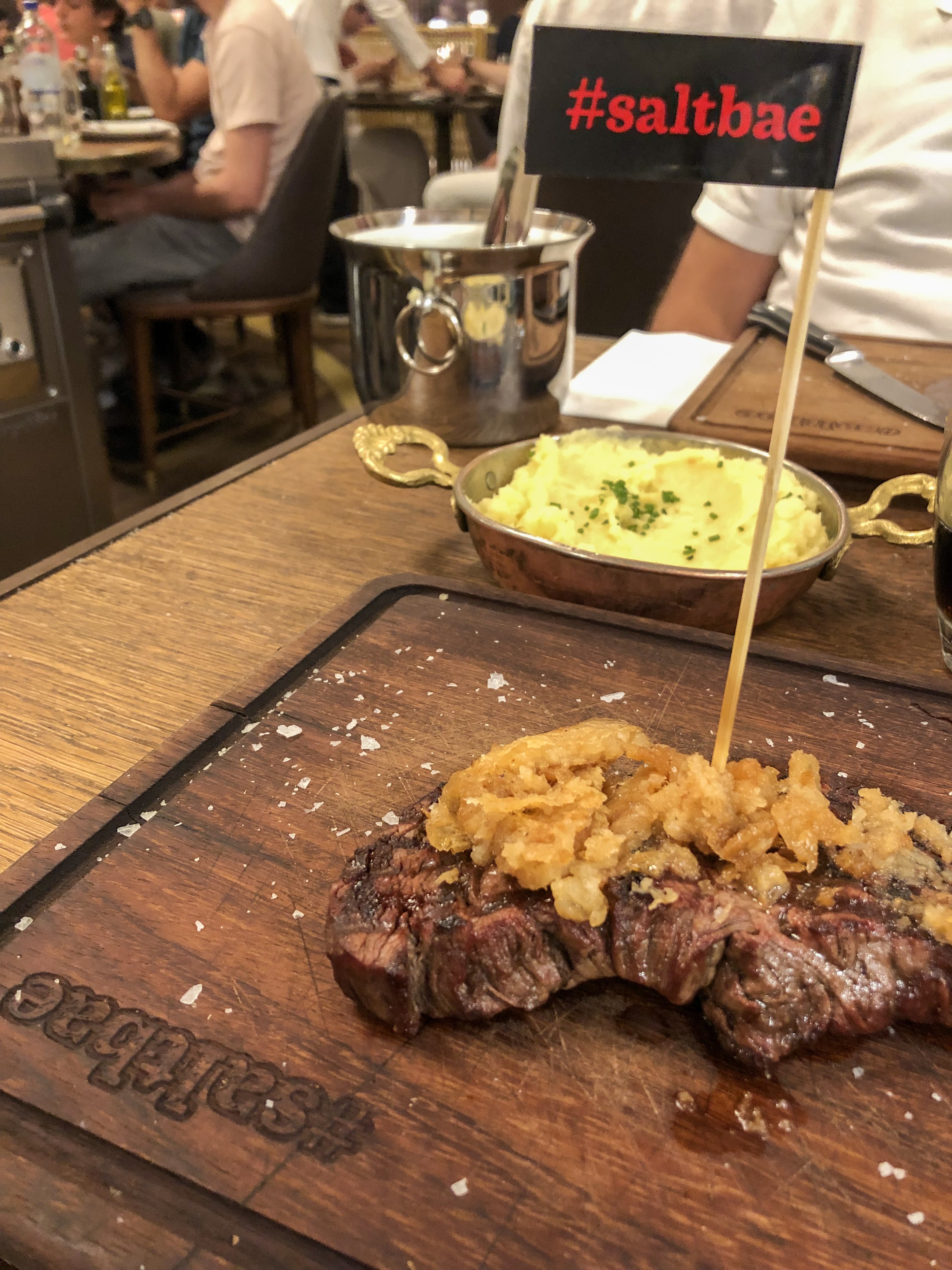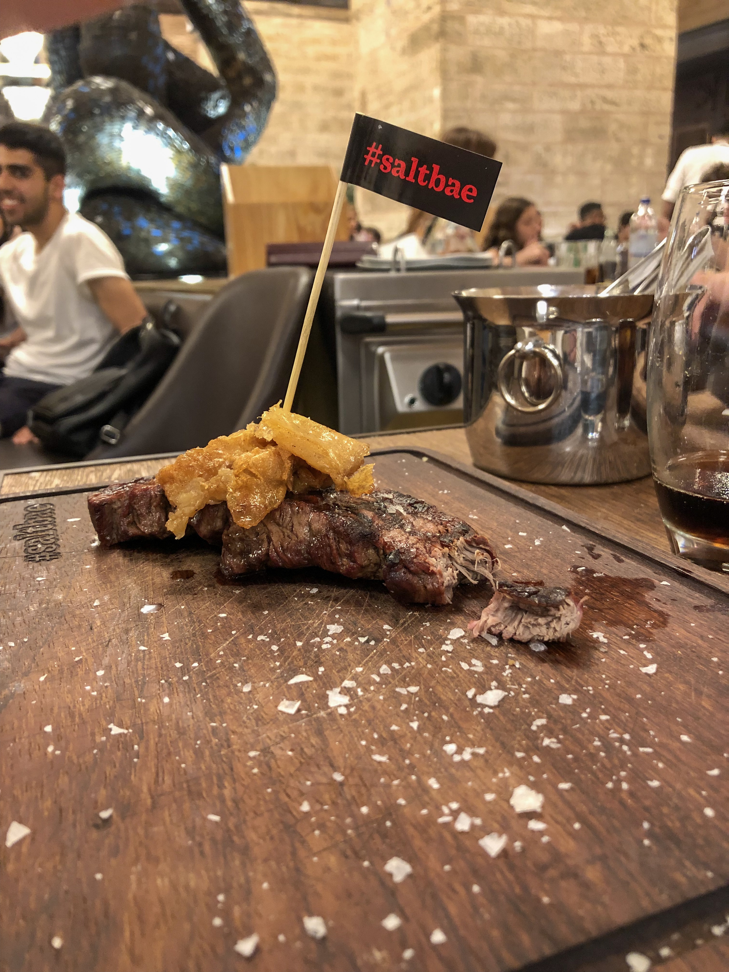 O restaurante foi criado pelo chef turco Nusret Gökçe em 2010. Sua fama, além da qualidade do preparo de suas carnes, vem do seu estilo único. Ele está sempre com um óculos escuro, camiseta decotada e o cabelo preso. Seu apelido Salt Bae, foi dado pela maneira teatral como joga sal na carne.
