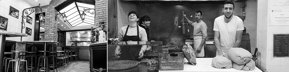 Churrería Madrid 1883 I foto: https://www.churreriamadrid1883.es/ Todas as manhãs, os chocolates são feitos de maneira artesanal com uma receita que está na família há mais de 4 gerações! Para os proprietários, é importante que os churros e porras estejam crocantes por fora e macios por dentro. Mas, além disso, ainda há outros produtos disponíveis no local, como torradas, panquecas, sanduíches e o delicioso pão com azeite, tomate e jamón serrano, que foi o que pedimos e estava SENSACIONAL!
