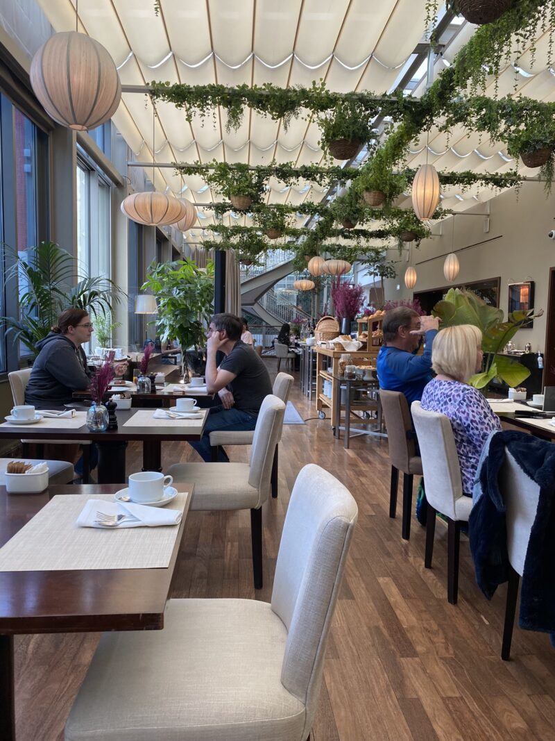 O hotel possui um restaurante, onde é servido o café da manhã. Tivemos a oportunidade de estar nele em três ocasiões. Uma manhã para o café da manhã e uma noite para o jantar. O café da manhã é farto, com opções a la carte e no buffet.