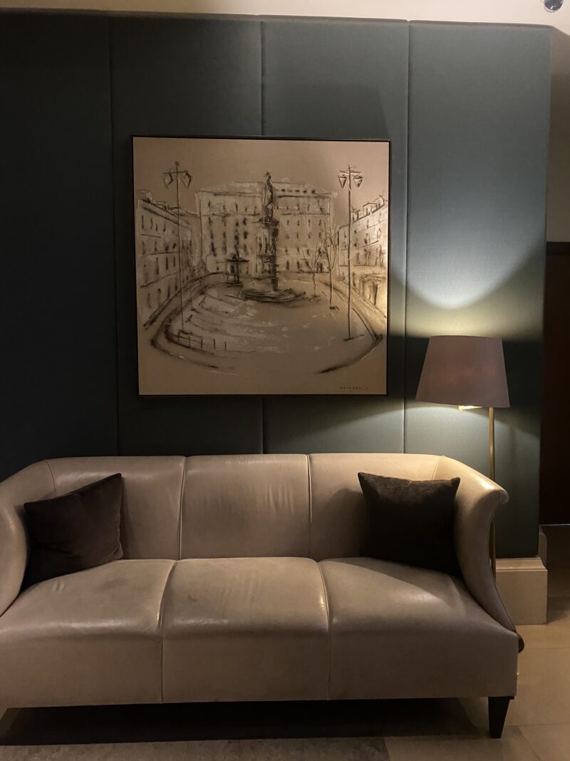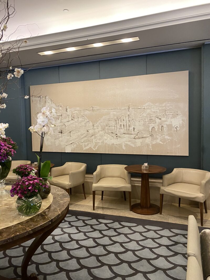Lisboa foi a última parada da nossa viagem por Portugal e o último hotel, daqueles que eu ganhei na premiação, onde nos hospedamos. O prédio é imenso e logo de cara já gostei da recepção ampla e repleta de orquídeas. Mas, olha, sinceramente o que me deixou mais encantada foram os quadros maravilhosos com regiões de Lisboa! Fiquei hipnotizada por essas obras!