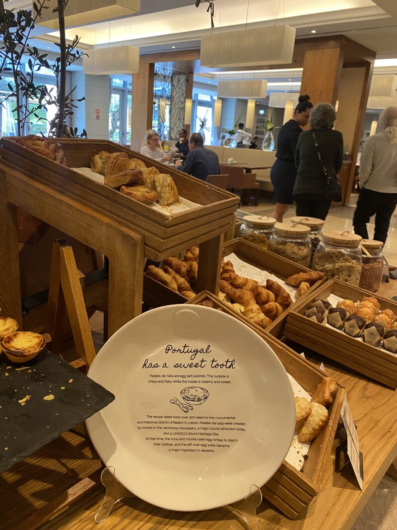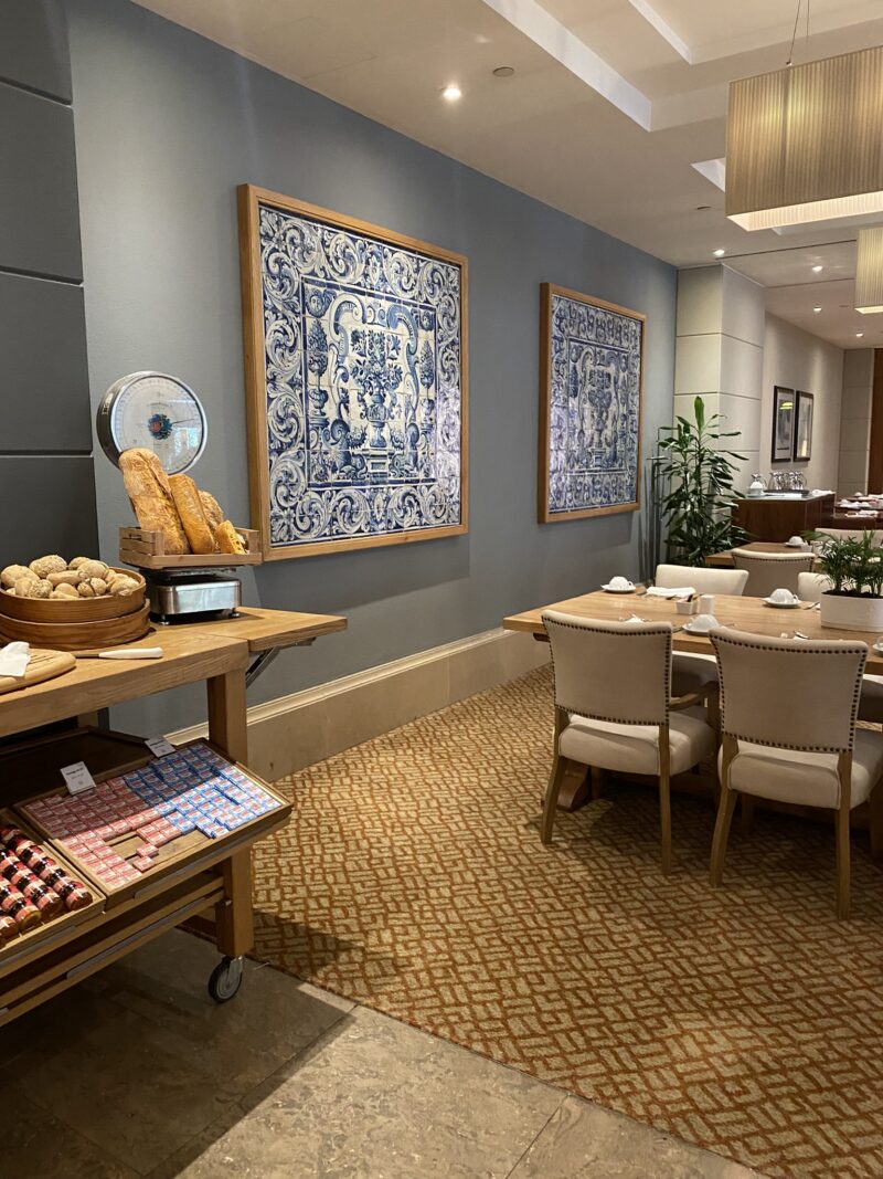 Agora, o café da manhã do Corinthia Lisboa foi algo absurdamente especial, que eu ainda não tinha experenciado antes. Chegando no salão fomos recepcionados e direcionados à nossa mesa. As opções eram tão abundantes que gastamos um bom tempo por lá.