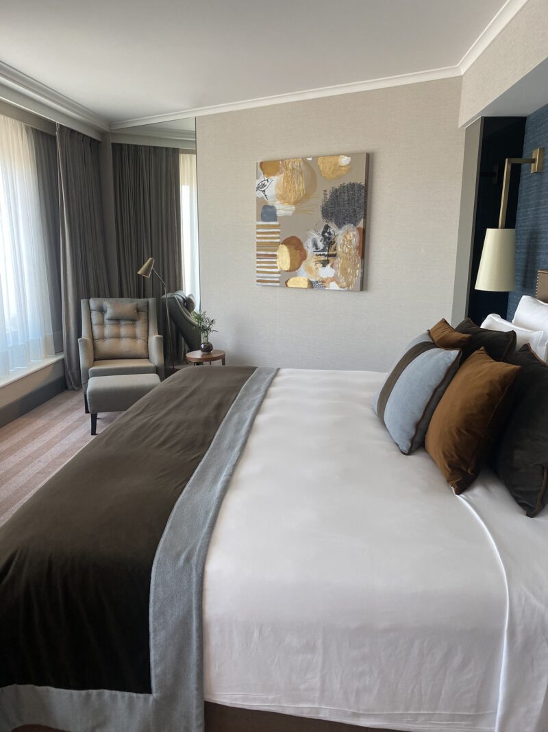 No meu segundo dia no hotel, fiz um tour guiado para conhecer toda a propriedade. Os quartos reformados estava lindos e muito aconchegantes, com uma decoração suave. Isso foi em março de 2023 e o hotel estava passando por uma reforma gradativa, alguns andares por vez.