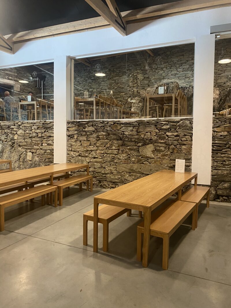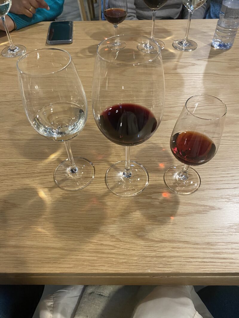 O grupo foi separado em dois, com tour guiado em português e em inglês. Andamos pelo vinhedo e fomos aprendendo sobre o cultivo e produção junto a um cenário espetacular. Em seguida entramos na construção, onde seguiu o tour. E finalizamos com uma degustação que incluía vinho branco, vinho tinto e vinho do Porto. Também havia petiscos por um preço adicional.